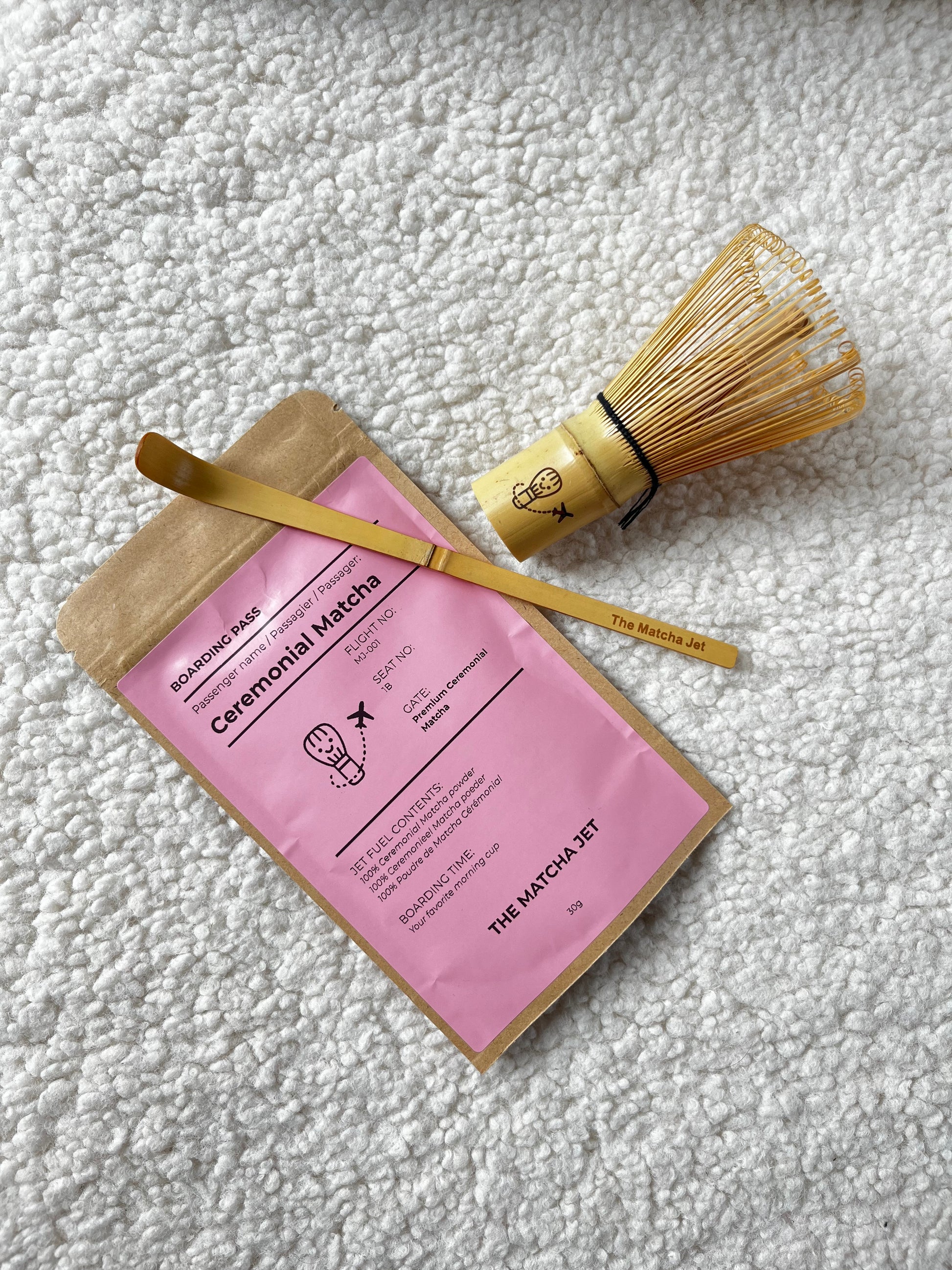 1 bag of matcha, 1 spoon and 1 whisk to make your matcha just perfect.